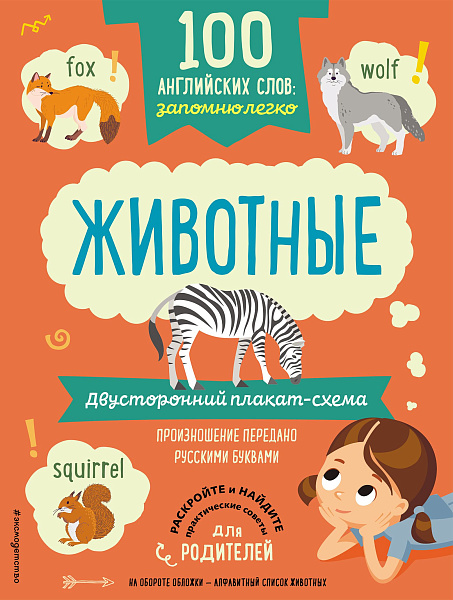 100 английских слов Запомню легко Животные (двусторонний плакат-схема)