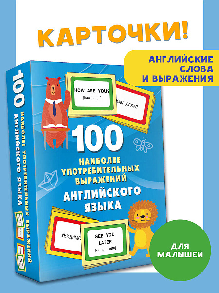 «100 наиболее употребительных выражений английского языка» — это комплект карточек для детей, начинающих изучать английский язык. В наборе — цветные двусторонние карточки с словосочетаниями, часто используемыми в разговорной английской речи. Для каждого словосочетания дана транскрипция. Благодаря занятиям по карточкам ребёнок в увлекательной игровой форме выучит самые важные английские слова и выражения.