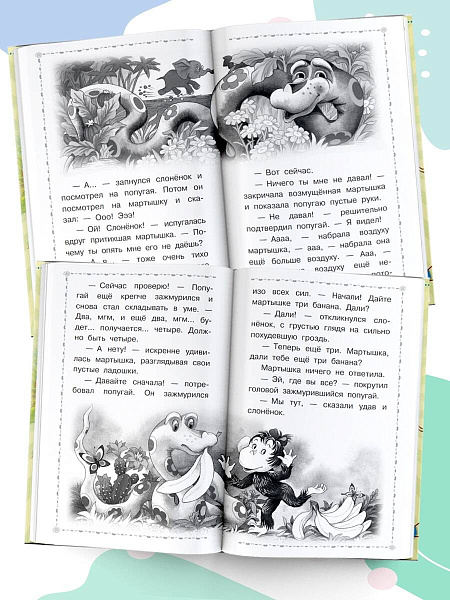 Мартышка, попугай, удав и слонёнок — знаменитые герои Григория Остера. Несколько поколений читателей знают, как делать зарядку для хвоста, измеряют удава в мартышках и слонятах и совершают научные открытия вместе с этой африканской компанией. В нашу книгу вошли все сказки из цикла «38 попугаев». Любимых героев можно увидеть и на экране. По всем сказкам были сняты мультфильмы.