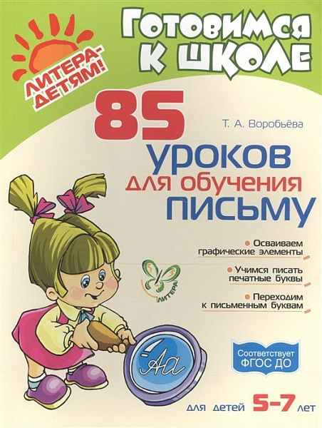 85 уроков для обучения письму. Книга известного петербургского логопеда Т. А. Воробьевой поможет дошкольнику освоить написание печатных и письменных букв. Кроме того, 85 уроков включают в себя задания по штриховке, дорисовке и обводке. Ребенок научится ориентироваться на листе бумаги, выполнять звуковой анализ слов. Для детей 5-7 лет, родителей, логопедов, воспитателей детских садов.