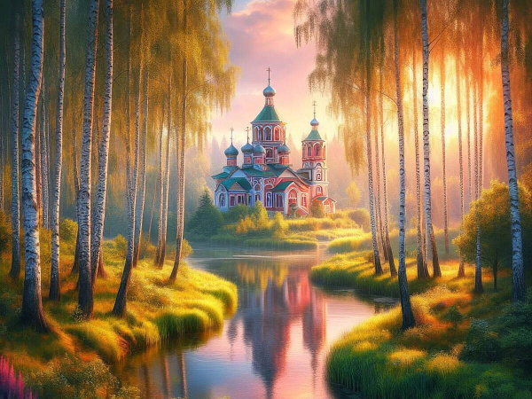 Алмаз мозаика (клас.) 40х50 Церковь на рассвете (арт. НД-8943)