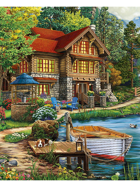 Алмазная мозаика 22*32см Рыжий Кот 8555 Домик у причала
