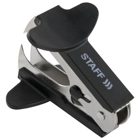 Антистеплер STAFF предназначен для удаления скоб № 10 и № 24/6. Рабочий механизм антистеплера выполнен из металла, корпус — из пластика черного цвета. Наличие фиксатора обеспечивает удобное и безопасное хранение в закрытом положении. Позволяет разжать закрепленные скобы, не нанося повреждений ни материалу, ни кончикам пальцев.