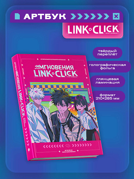 Узнайте всё о создании любимого сериала вместе с артбуком «Link Click. Агент времени. Мгновения». Здесь вы найдёте концепты персонажей и локаций с примечаниями создателей, коллекцию официальных артов, тексты песен, раскадровки опенинга и эндинга, интервью с режиссёром Ли Хаолином, а также скетчи и комментарии его команды.