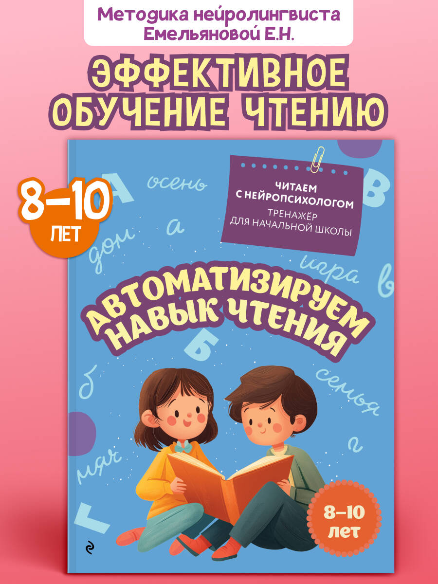 Книга-тренажёр от издательства «Эксмо» призвана помочь младшим школьникам автоматизировать навык осознанного чтения. В основе книги лежит нейропсихологический подход, способствующий эффективному обучению чтению, ведь чтение требует внимания и слаженной работы обоих полушарий мозга. Занимаясь, ребёнок будет образовывать слоги и читать их, вписывать пропущенные буквы, читать столбики слов то шёпотом, то громко, составлять предложения по картинкам, отвечать на вопросы по тексту. Все упражнения расположены таким образом, чтобы каждое задание продвинуло маленького читателя на шаг вперёд. Их нужно выполнять в предложенном порядке. Каждое занятие отдельно можно повторять по несколько раз в случае необходимости. Для достижения результата очень важны тщательность, последовательность, интенсивность выполнения упражнений: эффект не заставит себя долго ждать при ежедневной систематической работе. Автоматизация навыка чтения — одно из основных условий успешного обучения.