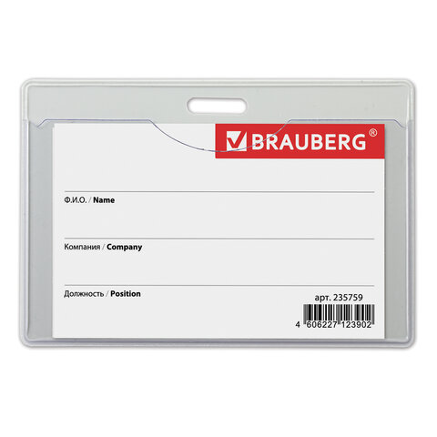 Горизонтальный бейдж BRAUBERG для именной карточки предназначен для идентификации сотрудников в компаниях, а также на семинарах, тренингах, презентациях и других мероприятиях.