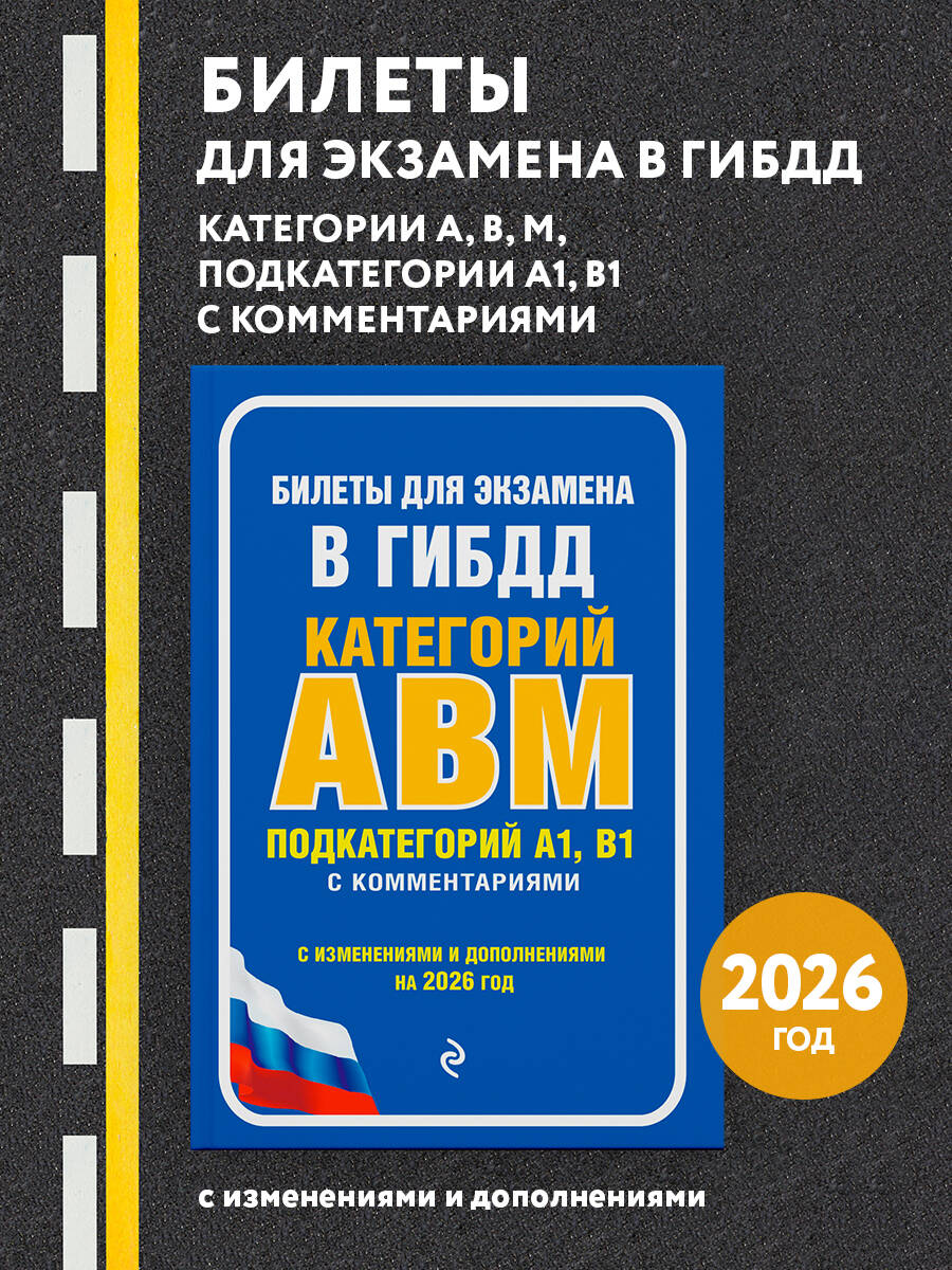 Аннотация к книге «Билеты для экзамена в ГИБДД Категории А,В,M, подкатег.A1,B1 с коммент.на 2026»