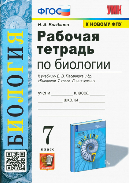Данное пособие предназначено для достижения планируемых образовательных результатов по биологии в соответствии с требованиями федерального государственного образовательного стандарта основного общего образования. Структура рабочей тетради соответствует тематической структуре учебника В. В. Пасечника и др. "Биология. 7 класс. Линия жизни". Особое внимание уделено заданиям, помогающим семиклассникам подготовиться к ВПР. Эти задания в тет-ради отмечены специальным значком - Задание ВПР. Они направлены на формирование у учащихся практических умений по распознаванию биологических объектов, нахождению сходства и различий между ними, анализу биологической информации, ее преобразованию из одного вида в другой, решению задач, проведению наблюдений и лабораторных работ, формулировке выводов. Пособие предназначено для самостоятельной работы обучающихся на уроках и для организации домашних заданий.