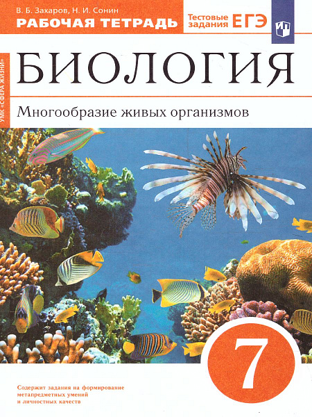 Предлагаемая тетрадь - часть учебного комплекта к учебнику В. Б. Захарова, Н. И. Сонина "Биология. Многообразие живых организмов. 7 класс". В нее включены разнообразные вопросы, задания, лабораторные работы. Материал в тетради располагается в той же последовательности, что и в учебнике. Работа с тетрадью поможет ученикам лучше освоить содержание учебника и подготовиться к успешной сдаче ЕГЭ и ГИА при помощи тестовых заданий, включенных в рабочую тетрадь. Специальными знаками отмечены задания, направленные на формирование метапредметных умений (планировать деятельность, выделять различные признаки, сравнивать, классифицировать и др.) и личностных качеств учеников.