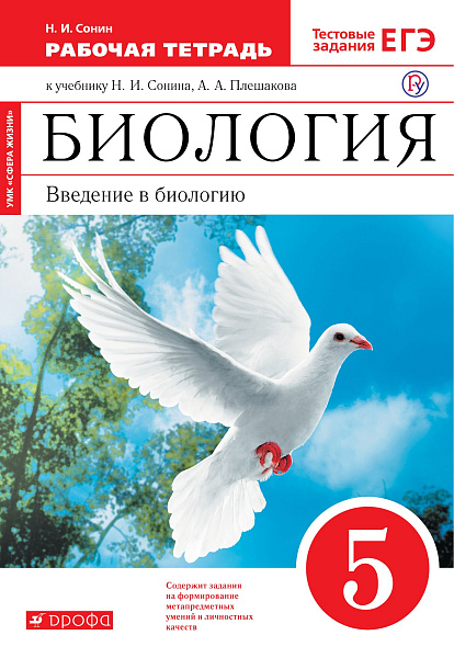 Предлагаемая тетрадь — часть учебного комплекса к учебнику Н. И. Сонина, А. А. Плешакова "Биология. Введение в биологию. 5 класс". Учебник соответствует Федеральному образовательному стандарту основного общего образования. Помимо тетради в состав УМК входят электронное приложение, методическое пособие и рабочая программа. Бесплатный доступ к электронному приложению и рабочей программе можно получить на сайте www.drofa.ru. Материал в тетради расположен в той же последовательности, что и в учебнике. В конце каждого раздела помещена рубрика "Тренировочные задания", вопросы которой составлены по форме и с учетом требований ЕГЭ. Работа с тетрадью поможет учащимся лучше освоить содержание курса. Специальными знаками отмечены задания, направленные на формирование метапредметных умений (планировать деятельность, выделять различные признаки, сравнивать, классифицировать и др.) и личностных качеств учеников.