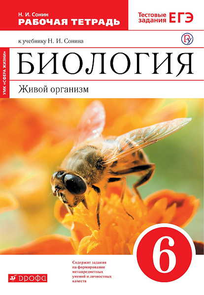 Предлагаемая тетрадь — часть учебного комплекса к учебнику Н. И. Сонина "Биология. Живой организм. 6 класс". Специальными знаками отмечены задания, направленные на формирование метапредметных умений (планировать деятельность, выделять различные признаки, сравнивать, классифицировать и др.) и личностных качеств учеников. Материал в тетради расположен в той же последовательности, что и в учебнике. В конце каждого раздела помещена рубрика "Тренировочные задания", вопросы которой составлены по форме и с учетом требований ЕГЭ. Работа с тетрадью поможет учащимся лучше освоить содержание курса. Учебник соответствует Федеральному образовательному стандарту основного общего образования. Помимо тетради в состав УМК входят электронное приложение, методическое пособие и рабочая программа. Бесплатный доступ к электронному приложению и рабочей программе можно получить на сайте www.drofa.ru.