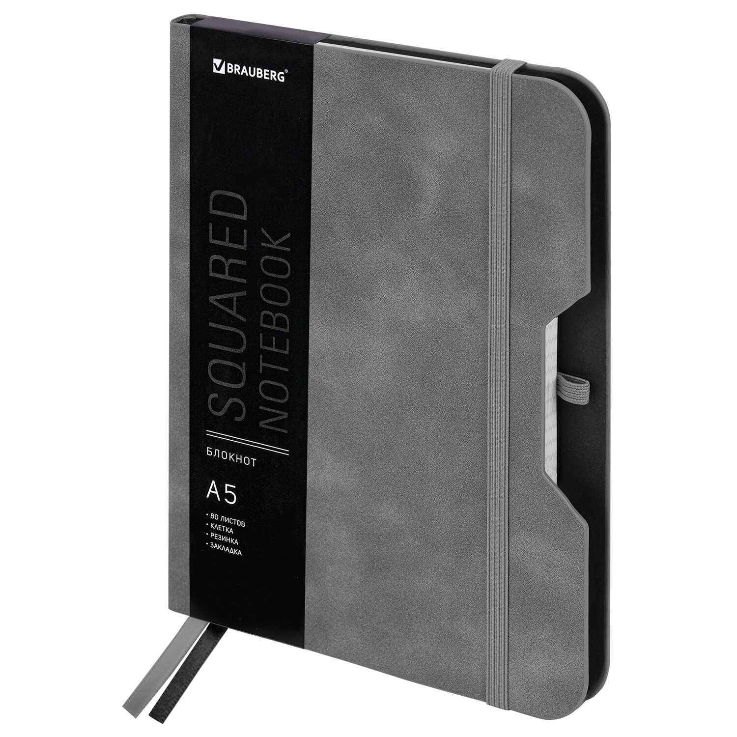Аннотация к книге «Блокнот А5 80л BRAUBERG 113440 NOTE под кожу софт-тач с резинкой клетка серый»