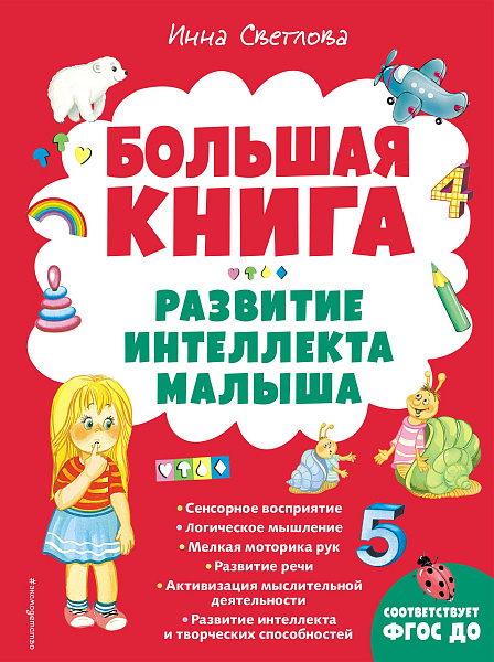 Хотите, чтобы ваш ребёнок рос умным и разносторонне развитым? Тогда незаменимой книгой для вас и вашего малыша станет «Большая книга. Развитие интеллекта малыша». Автор книги — Инна Светлова, известный и опытный педагог. Вам не придётся пользоваться множеством отдельных пособий — весь необходимый материал для эффективных занятий собран в этой книге. По ней можно заниматься с самых ранних лет, а впоследствии неоднократно возвращаться к повторению и закреплению материала, переходя к более сложным заданиям книги. Упражнения в книге удобно делятся по разделам: 1. «Сенсорика» — учимся правильно определять формы, цвета, размеры предметов. 2. «Логика» — учимся сравнивать, находить соответствия и отличия, делать и обосновывать выводы. 3. «Математика» — учимся считать, складывать предметы и сравнивать их количество. 4. «Развитие речи» — учимся правильному произношению звуков, чёткой дикции, составлению связных рассказов по картинкам. 5. «Окружающий мир» — знакомимся с временами года, их основными признаками и способами их различать. 6. «Животные» — изучаем мир зверей, запоминаем их названия и визуальные признаки. 7. «Предметы» — знакомимся с вещами вокруг нас, учимся правильно определять их назначение. 8. «Развитие мелкой моторики» — разрабатываем моторику пальцев, учимся уверенно пользоваться ручкой и карандашом.