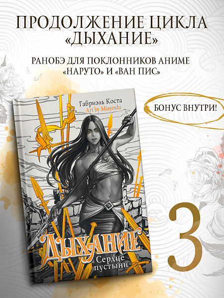 — «Дыхание» — увлекательное азиатское фэнтези для всех поклонников аниме Naruto и One Piece и игровых вселенных Genshin Impact и Honkai: Star Rail. Роман написан в стиле ранобэ — отдельные сцены адаптированы в виде манги.
