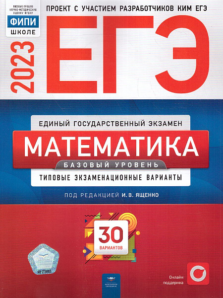 • 30 типовых экзаменационных вариантов, составленных в соответствии с проектом демоверсии КИМ ЕГЭ по математике базового уровня 2023 года;