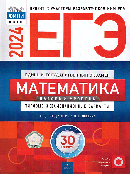 30 типовых экзаменационных вариантов, составленных в соответствии с проектом демоверсии КИМ ЕГЭ по математике базового уровня 2024 года;