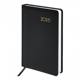 Жесткая книжная обложка классического черного цвета с легкой рельефной фактурой напоминает натуральную кожу. Материал обложки – балакрон, подходит для тиснения только фольгой. Дополнением является закладка-ляссе, с помощью которой при необходимости можно быстро открыть ежедневник на нужной странице. Помимо прочего, ежедневник снабжен обширным справочным материалом. В конце имеются 4 страницы для записей и заметок.