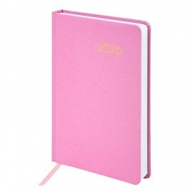 Жесткая книжная обложка насыщенного розового цвета с легкой рельефной фактурой напоминает натуральную кожу. Материал обложки – балакрон, подходит для тиснения только фольгой. Дополнением является закладка-ляссе, с помощью которой при необходимости можно быстро открыть ежедневник на нужной странице. Помимо прочего, ежедневник снабжен обширным справочным материалом. В конце имеются 4 страницы для записей и заметок.