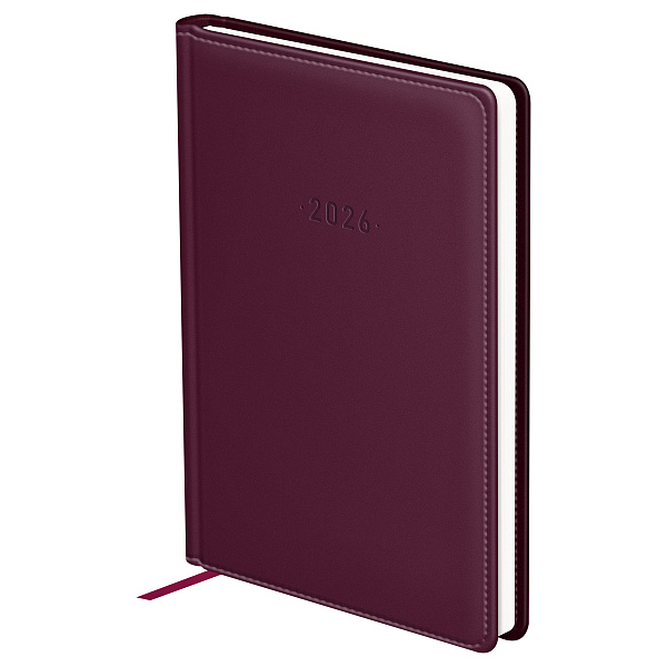 Элегантный датированный ежедневник на 2026 год BG формата А6 серии серии Winner в твёрдой обложке цвета бургунди, выполненной из высококачественной экокожи с гладкой матовой поверхностью и поролоновой прослойкой. Внутренний блок состоит из 176 листов белой офсетной бумаги плотностью 70 г/м2 с печатью в 2 краски. Датированный ежедневник представлен в размере 105*145 мм.