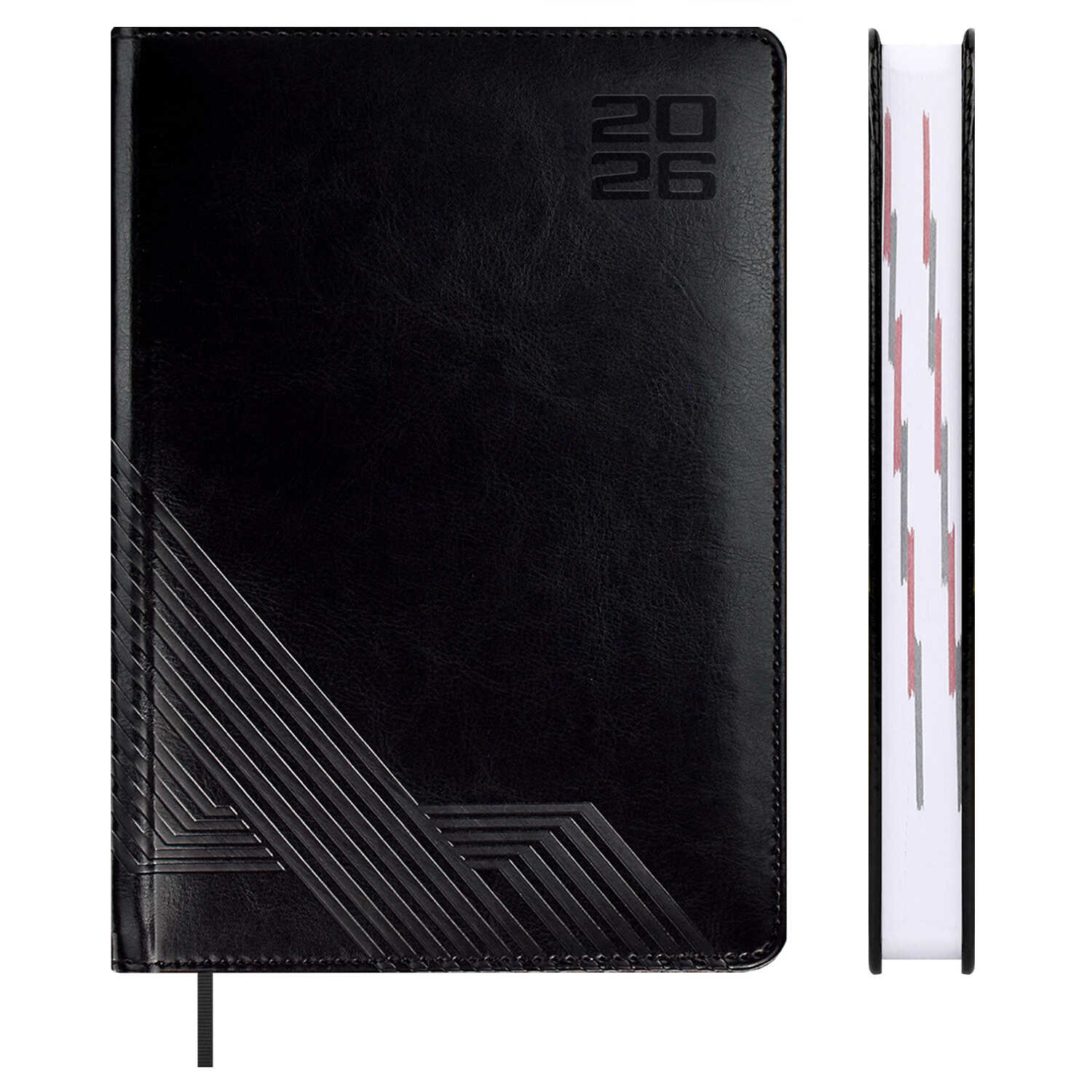 Ежедневник датированный 2026 ESCALADA, А5, 176 л., арт. 70218/ 15 САРИФ ЧЁРНЫЙ (кожзам: 146x211 мм, твёрдый переплёт с поролоном, материал обложки: искусственная кожа "Сариф"; декор: блинтовое тиснение; способ крепления блока: ниткошвейный; вн. блок: 176 л., белый офсет 70 г/м², печать в две краски (линия), справочный материал: есть; перфорация углов блока: есть; закладка/-и: одно ляссе; каптал: есть; форзац: печать в одну краску; персонализация возможна: да)