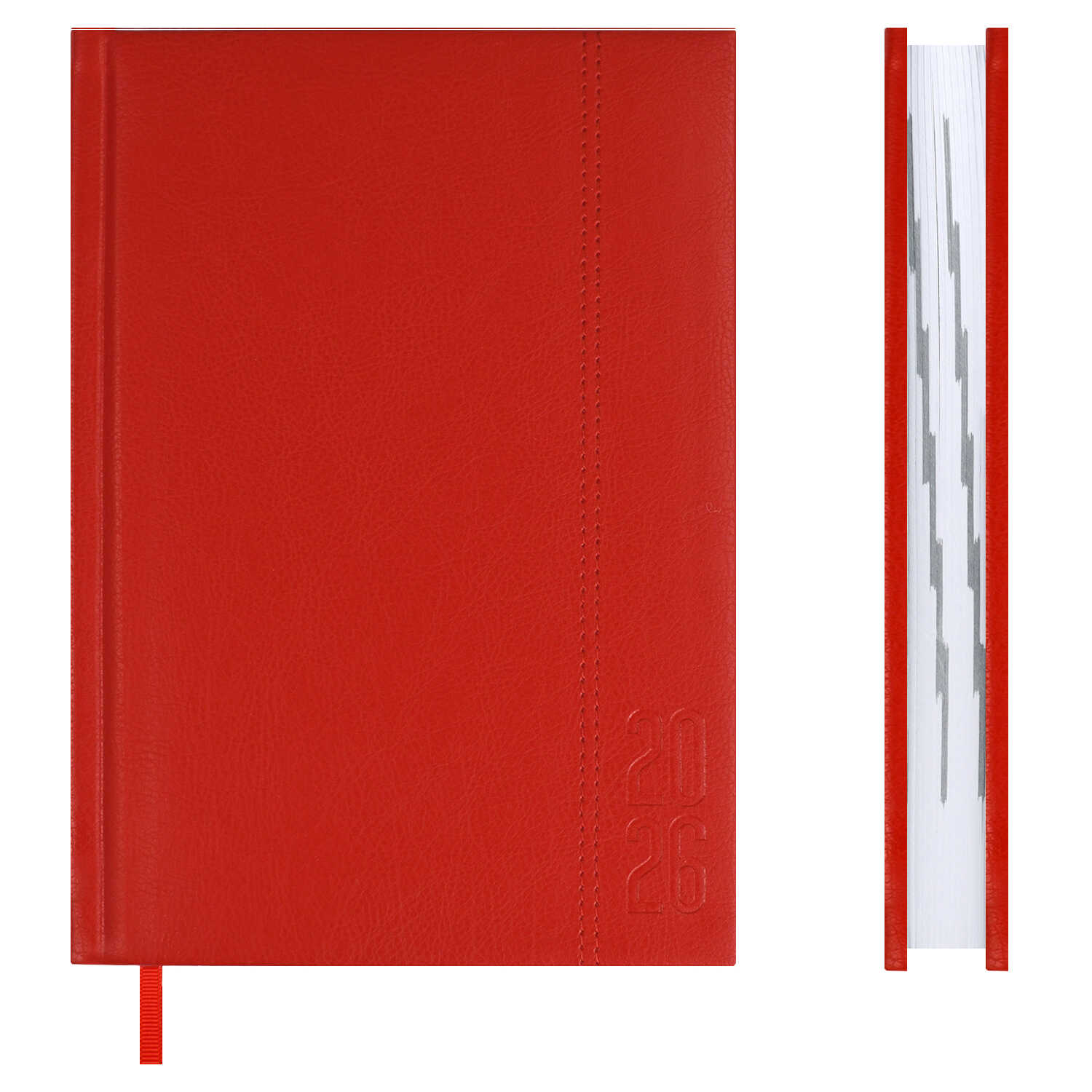 Ежедневник датированный 2026 ESCALADA, А5, 176 л., арт. 70227/ 15 НАППА КРАСНЫЙ (кожзам: 146х211 мм, твёрдый переплёт с поролоном, материал обложки: искусственная кожа "Наппа"; декор: блинтовое тиснение, отделочная строчка; способ крепления блока: ниткошвейный; вн. блок: 176 л., белый офсет 70 г/м², печать в одну краску (линия), справочный материал: есть; перфорация углов блока: нет; закладка/-и: одно ляссе; каптал: есть; форзац: без печати; персонализация возможна: да)