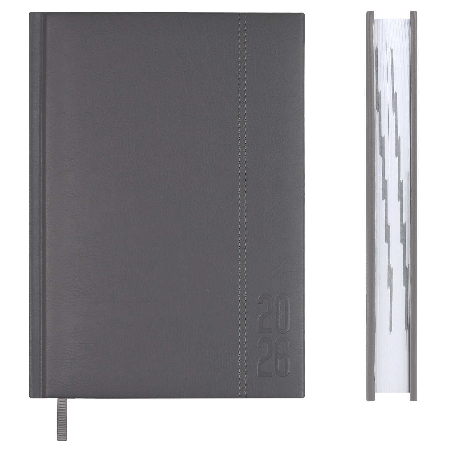 Ежедневник датированный 2026 ESCALADA, А5, 176 л., арт. 70229/ 15 НАППА СЕРЫЙ (кожзам: 146х211 мм, твёрдый переплёт с поролоном, материал обложки: искусственная кожа "Наппа"; декор: блинтовое тиснение, отделочная строчка; способ крепления блока: ниткошвейный; вн. блок: 176 л., белый офсет 70 г/м², печать в одну краску (линия), справочный материал: есть; перфорация углов блока: нет; закладка/-и: одно ляссе; каптал: есть; форзац: без печати; персонализация возможна: да)