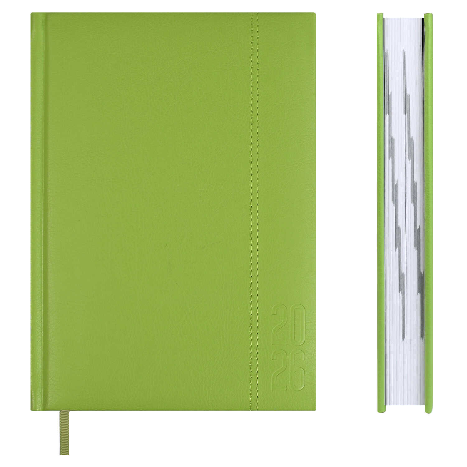 Ежедневник датированный 2026 ESCALADA, А5, 176 л., арт. 70231/ 15 НАППА САЛАТОВЫЙ (кожзам: 146х211 мм, твёрдый переплёт с поролоном, материал обложки: искусственная кожа "Наппа"; декор: блинтовое тиснение, отделочная строчка; способ крепления блока: ниткошвейный; вн. блок: 176 л., белый офсет 70 г/м², печать в одну краску (линия), справочный материал: есть; перфорация углов блока: нет; закладка/-и: одно ляссе; каптал: есть; форзац: без печати; персонализация возможна: да)