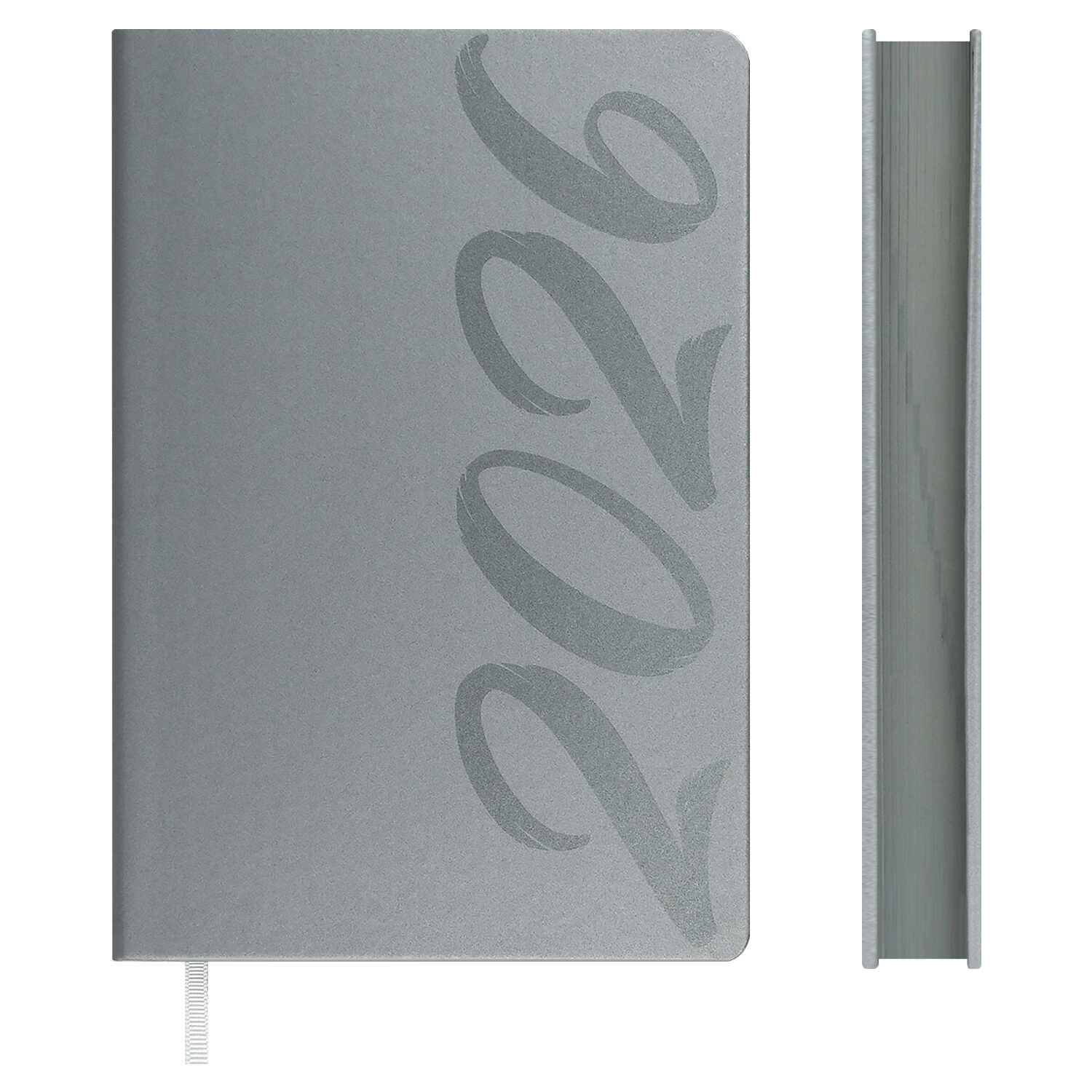 Ежедневник датированный 2026 ESCALADA, А5, 176 л., арт. 70234/ 15 СОФТ-ТАЧ СЕРЫЙ (кожзам: 146х211 мм, твёрдый переплёт, материал обложки: искусственная кожа "Софт-тач"; декор: выборочный УФ-лак; способ крепления блока: ниткошвейный; вн. блок: 176 л., кремовый офсет 70 г/м², печать в две краски (клетка), справочный материал: есть; перфорация углов блока: нет; отделка среза: окрашивание пантоном; закладка/-и: одно ляссе; каптал: есть; форзац: печать пантоном; персонализация возможна: да)