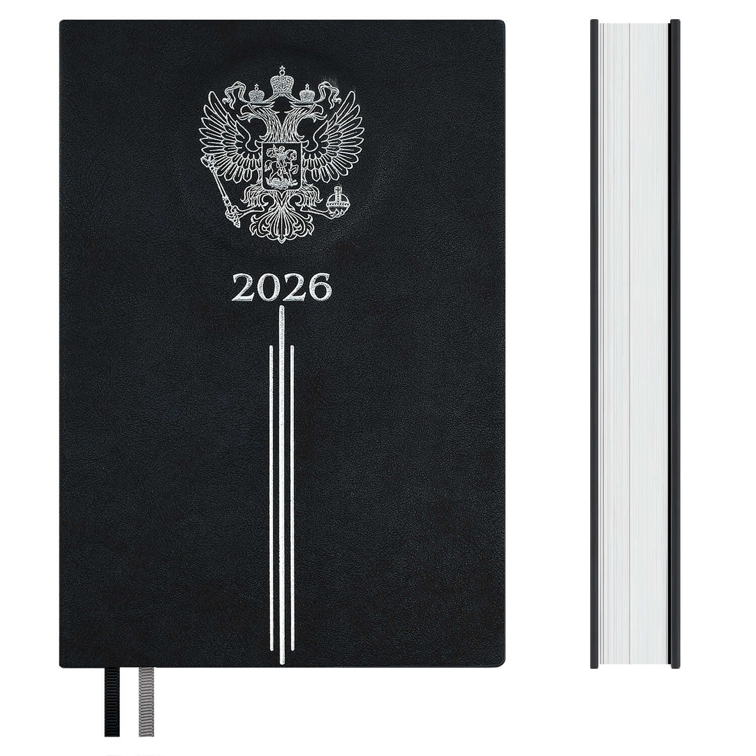 Ежедневник датированный 2026 ESCALADA, А5, 176 л., арт. 70249/ 10 ТИВОЛИ ЧЁРНЫЙ (кожзам: 146x211 мм, твёрдый переплёт, запаянный край, материал обложки: искусственная кожа "Тиволи"; декор: 3D-дизайн, тиснение фольгой; способ крепления блока: ниткошвейный; вн. блок: 176 л., кремовый офсет 70 г/м², печать в две краски (линия), справочный материал: есть; перфорация углов блока: нет; отделка среза: фольгирование; закладка/-и: два ляссе; каптал: есть; форзац: печать пантоном; персонализация возможна: да)