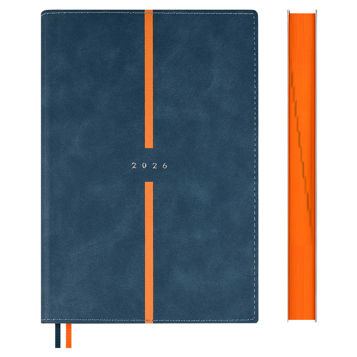 Ежедневник датированный 2026 ESCALADA, А5, 176 л., арт. 70264/ 15 ЛЕЗЕРЕТТО СИЗО-СИНИЙ (кожзам: 146x211 мм, мягкий переплёт, материал обложки: искусственная кожа "Лезеретто"; декор: тиснение фольгой, печать шелкографией в одну краску; способ крепления блока: ниткошвейный; вн. блок: 176 л., кремовый офсет 70 г/м², печать в две краски (клетка), справочный материал: есть; перфорация углов блока: нет; отделка среза: окрашивание пантоном; закладка/-и: два ляссе; каптал: есть; форзац: печать пантоном; персонализация возможна: да)