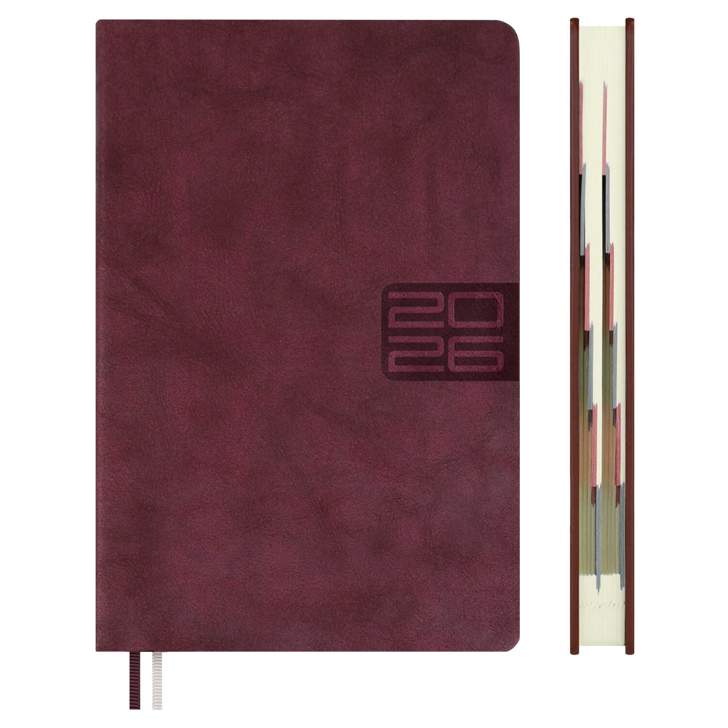 Ежедневник датированный 2026 ESCALADA, #ДУМАЙ КАК МИЛЛИАРДЕР, А5, 176 л., арт. 70241/ 15 ТИВОЛИ ГЛОСС БОРДОВЫЙ (кожзам: 146x211 мм, твёрдый переплёт, запаянный край, материал обложки: искусственная кожа "Тиволи глосс"; декор: блинтовое тиснение; способ крепления блока: ниткошвейный; вн. блок: 176 л., тонированный офсет 70 г/м², печать в две краски (линия), справочный материал: есть; перфорация углов блока: есть; закладка/-и: два ляссе; каптал: есть; форзац: печать пантоном; особенности: в блоке использованы мотивирующие высказывания из книги "Думай как миллиардер")