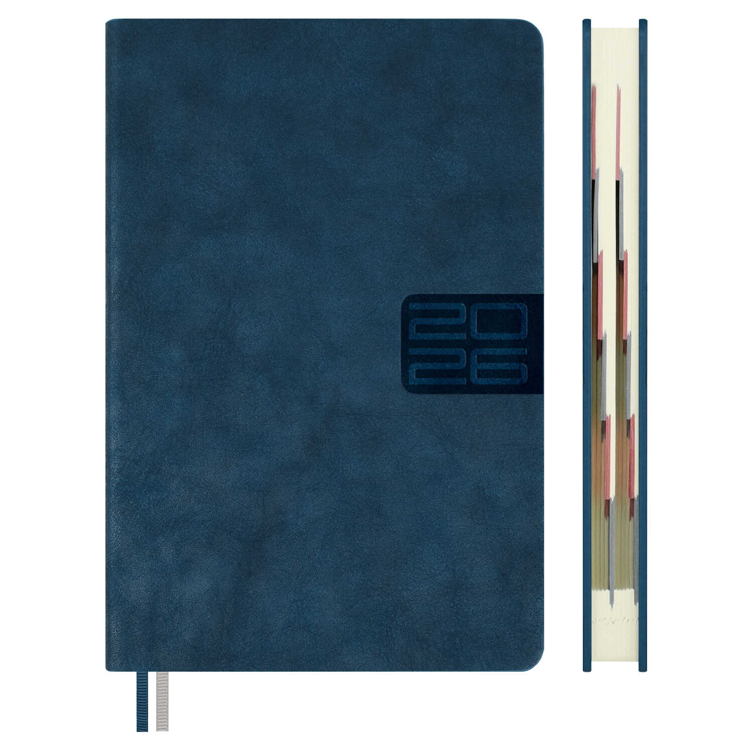 Ежедневник датированный 2026 ESCALADA, #ДУМАЙ КАК МИЛЛИАРДЕР, А5, 176 л., арт. 70242/ 15 ТИВОЛИ ГЛОСС СИНИЙ (кожзам: 146x211 мм, твёрдый переплёт, запаянный край, материал обложки: искусственная кожа "Тиволи глосс"; декор: блинтовое тиснение; способ крепления блока: ниткошвейный; вн. блок: 176 л., тонированный офсет 70 г/м², печать в две краски (линия), справочный материал: есть; перфорация углов блока: есть; закладка/-и: два ляссе; каптал: есть; форзац: печать пантоном; особенности: в блоке использованы мотивирующие высказывания из книги "Думай как миллиардер")