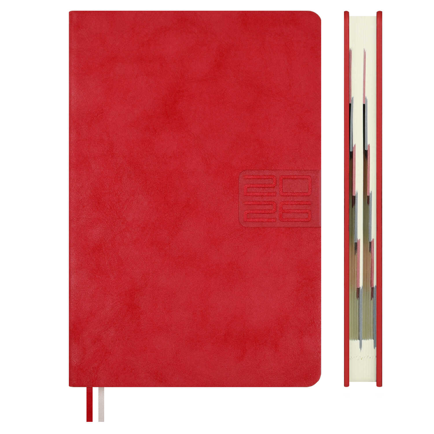 Ежедневник датированный 2026 ESCALADA, #ДУМАЙ КАК МИЛЛИАРДЕР, А5, 176 л., арт. 70243/ 15 ТИВОЛИ ГЛОСС КРАСНЫЙ (кожзам: 146x211 мм, твёрдый переплёт, запаянный край, материал обложки: искусственная кожа "Тиволи глосс"; декор: блинтовое тиснение; способ крепления блока: ниткошвейный; вн. блок: 176 л., тонированный офсет 70 г/м², печать в две краски (линия), справочный материал: есть; перфорация углов блока: есть; закладка/-и: два ляссе; каптал: есть; форзац: печать пантоном; особенности: в блоке использованы мотивирующие высказывания из книги "Думай как миллиардер")