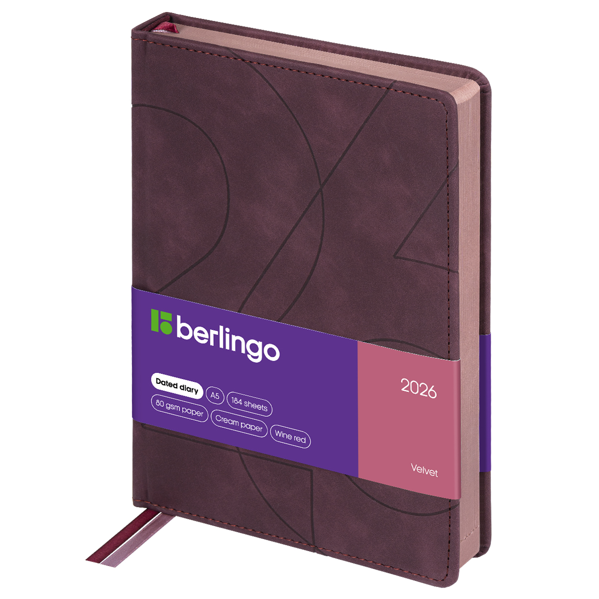 Датированный ежедневник на 2026 год Berlingo "Velvet" формата А5 идеален для повседневного использования. Размер - 150*215 мм. Модель представлена в твёрдой матовой обложке из бордовой высококачественной экозамши. Имиджевое тиснение на обложке добавляет интересную деталь в классический дизайн.