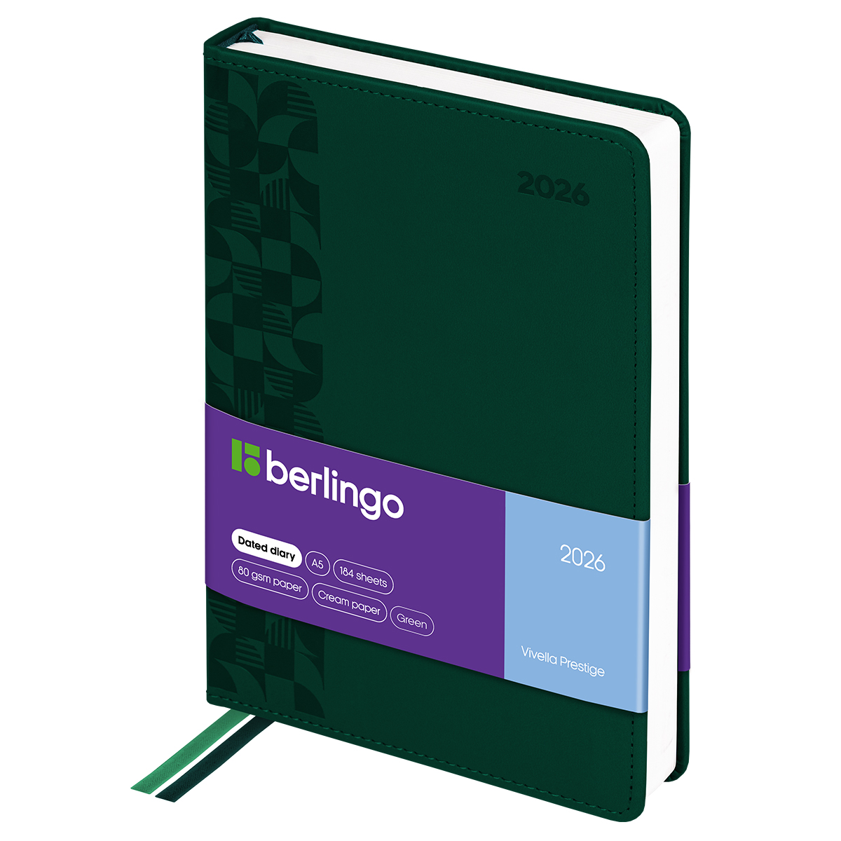 Датированный ежедневник на 2026 год Berlingo "Vivella Prestige" формата А5 идеален для повседневного использования. Размер — 150*215 мм. Модель представлена с твёрдой матовой обложкой из зелёной высококачественной экокожи. Имиджевое тиснение на обложке добавляет интересную деталь в классический дизайн.