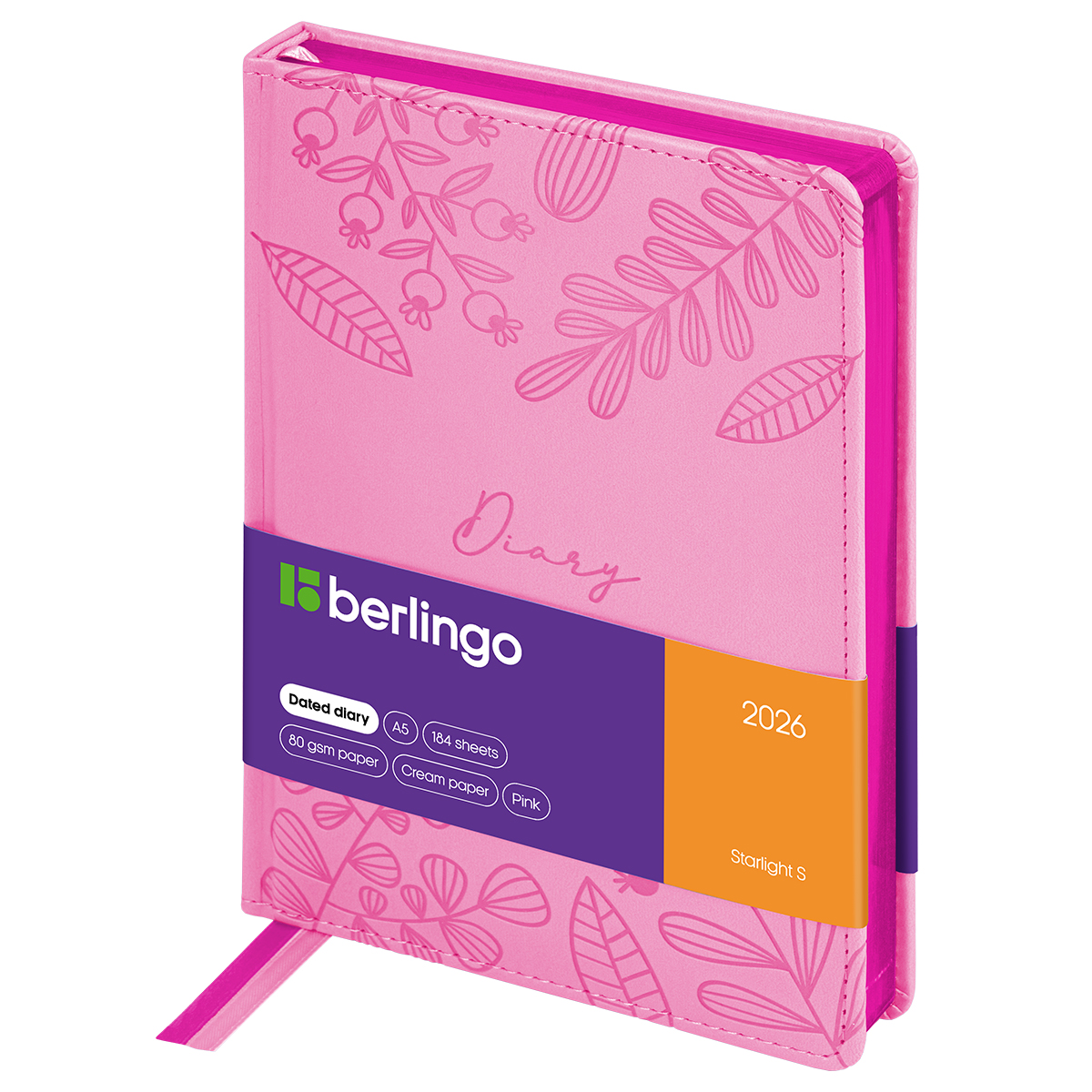 Датированный ежедневник на 2026 год Berlingo "Starlight S" формата А5 идеален для повседневного использования. Модель представлена с поролоновой прослойкой и прострочкой по периметру. Обложку дополняет элегантное имиджевое тиснение. Сочетание розовой обложки и металлизированного среза в цвет делает ежедневник интересной деталью делового образа.