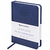 Твердая обложка благородного темно-синего цвета стилизована под фактурную кожу. Материал обложки подходит для горячего тиснения. Дополнением является закладка-ляссе, с помощью которой при необходимости можно быстро открыть ежедневник на нужной странице. Помимо прочего, ежедневник снабжен обширным справочным материалом. В конце ежедневника есть 4 страницы для записей и заметок.