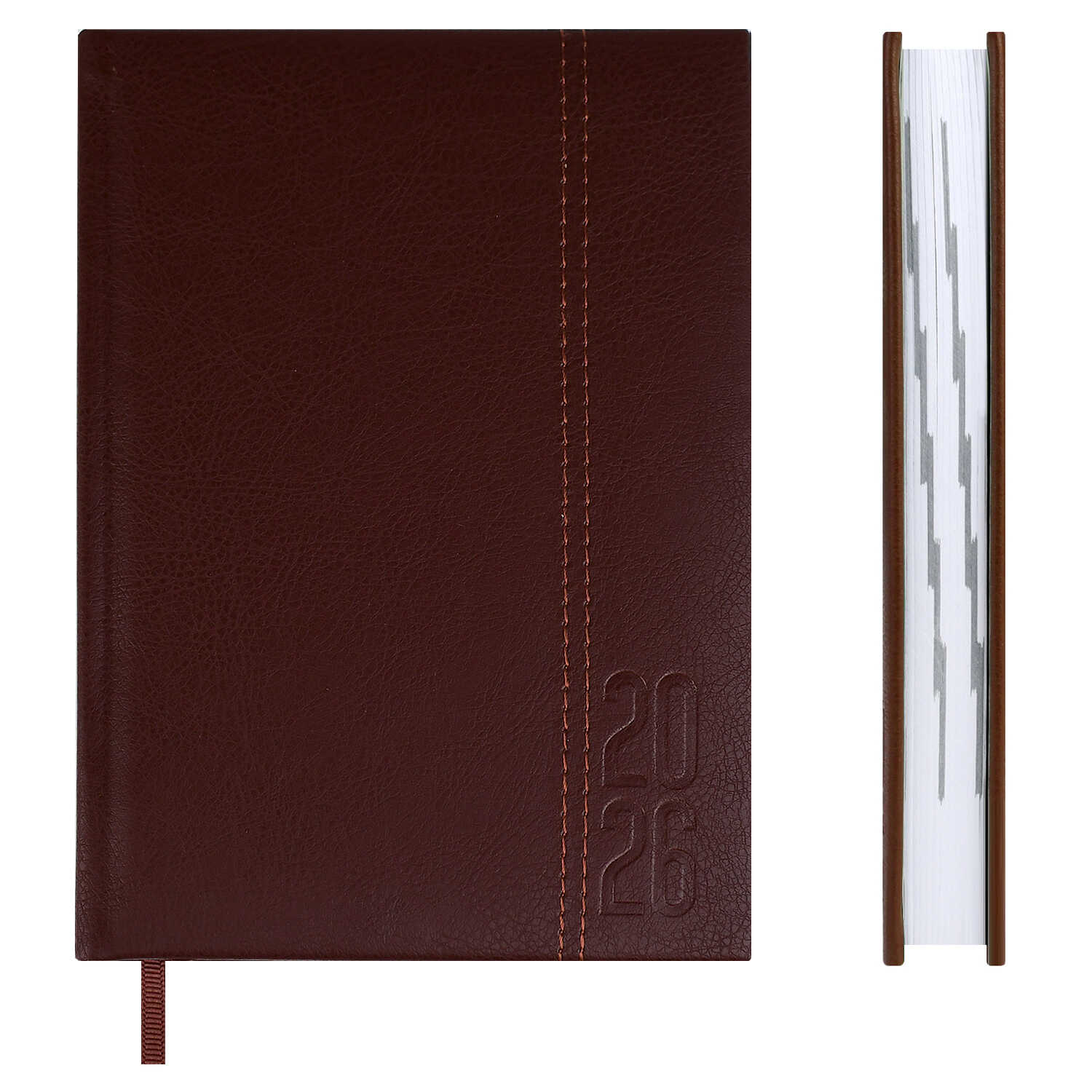 Ежедневник датированный 2026 ESCALADA, А6+, 176 л., арт. 70284/ 20 НАППА КОРИЧНЕВЫЙ (кожзам: 126х174 мм, твёрдый переплёт с поролоном, материал обложки: искусственная кожа "Наппа"; декор: блинтовое тиснение, отделочная строчка; способ крепления блока: ниткошвейный; вн. блок: 176 л., белый офсет 70 г/м², печать в одну краску (линия), справочный материал: есть; перфорация углов блока: нет; закладка/-и: одно ляссе)