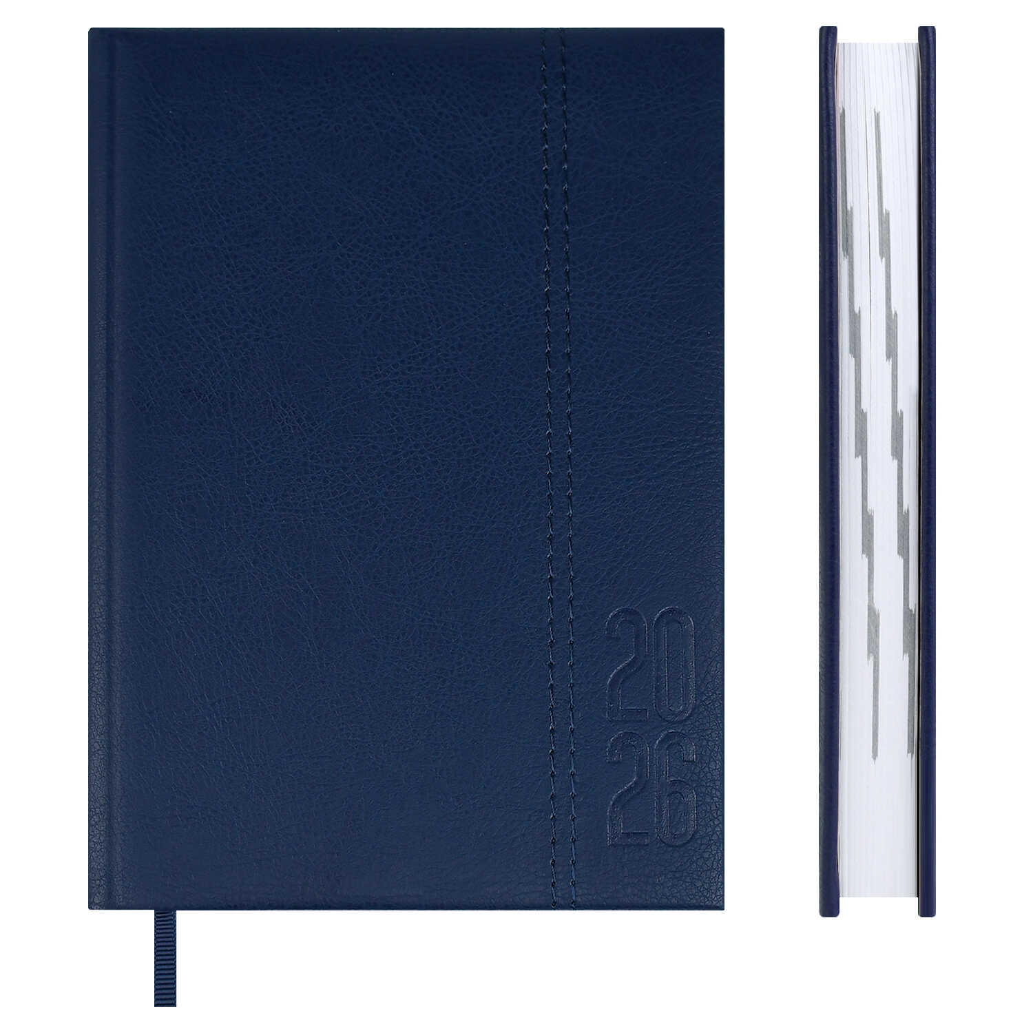 Ежедневник датированный 2026 ESCALADA, А6+, 176 л., арт. 70285/ 20 НАППА СИНИЙ (кожзам: 126х174 мм, твёрдый переплёт с поролоном, материал обложки: искусственная кожа "Наппа"; декор: блинтовое тиснение, отделочная строчка; способ крепления блока: ниткошвейный; вн. блок: 176 л., белый офсет 70 г/м², печать в одну краску (линия), справочный материал: есть; перфорация углов блока: нет; закладка/-и: одно ляссе)