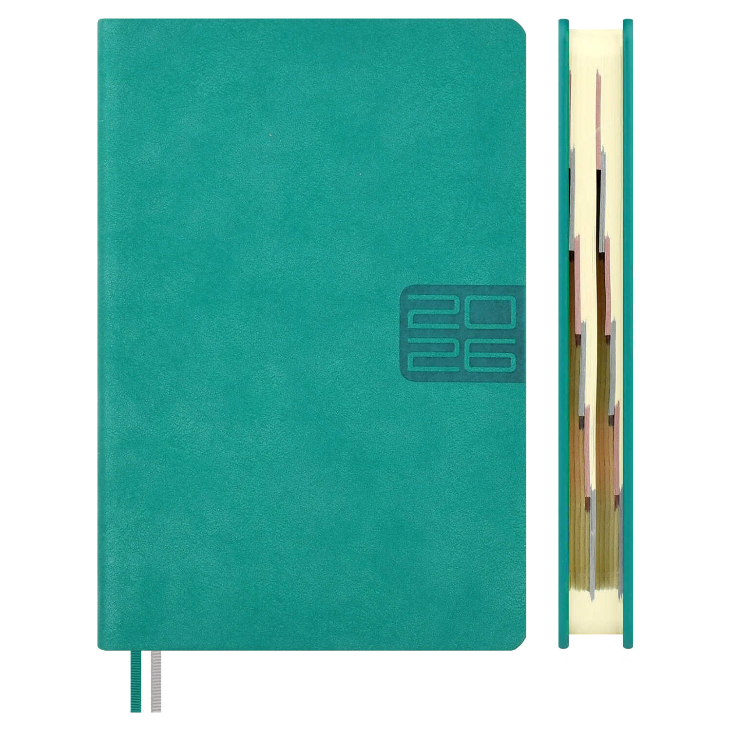 Ежедневник датированный 2026 ESCALADA, #ДУМАЙ КАК МИЛЛИАРДЕР, А6+, 176 л., арт. 70295/ 20 ТИВОЛИ ГЛОСС БИРЮЗОВЫЙ (кожзам: 126x174 мм, твёрдый переплёт, запаянный край, материал обложки: искусственная кожа "Тиволи глосс"; декор: блинтовое тиснение; способ крепления блока: ниткошвейный; вн. блок: 176 л., тонированный офсет 70 г/м², печать в две краски (линия), справочный материал: есть; перфорация углов блока: есть; закладка/-и: два ляссе; каптал: есть; форзац: печать пантоном; особенности: вырубка блока по месяцам, в блоке использованы мотивирующие высказывания экстраординарной личности, предпринимателя и миллиардера, титулованного «Провидца века», шоумена и телеведущего, бывшего владельца конкурса красоты «Мисс Вселенная» и дважды президента США – Дональда Трампа
