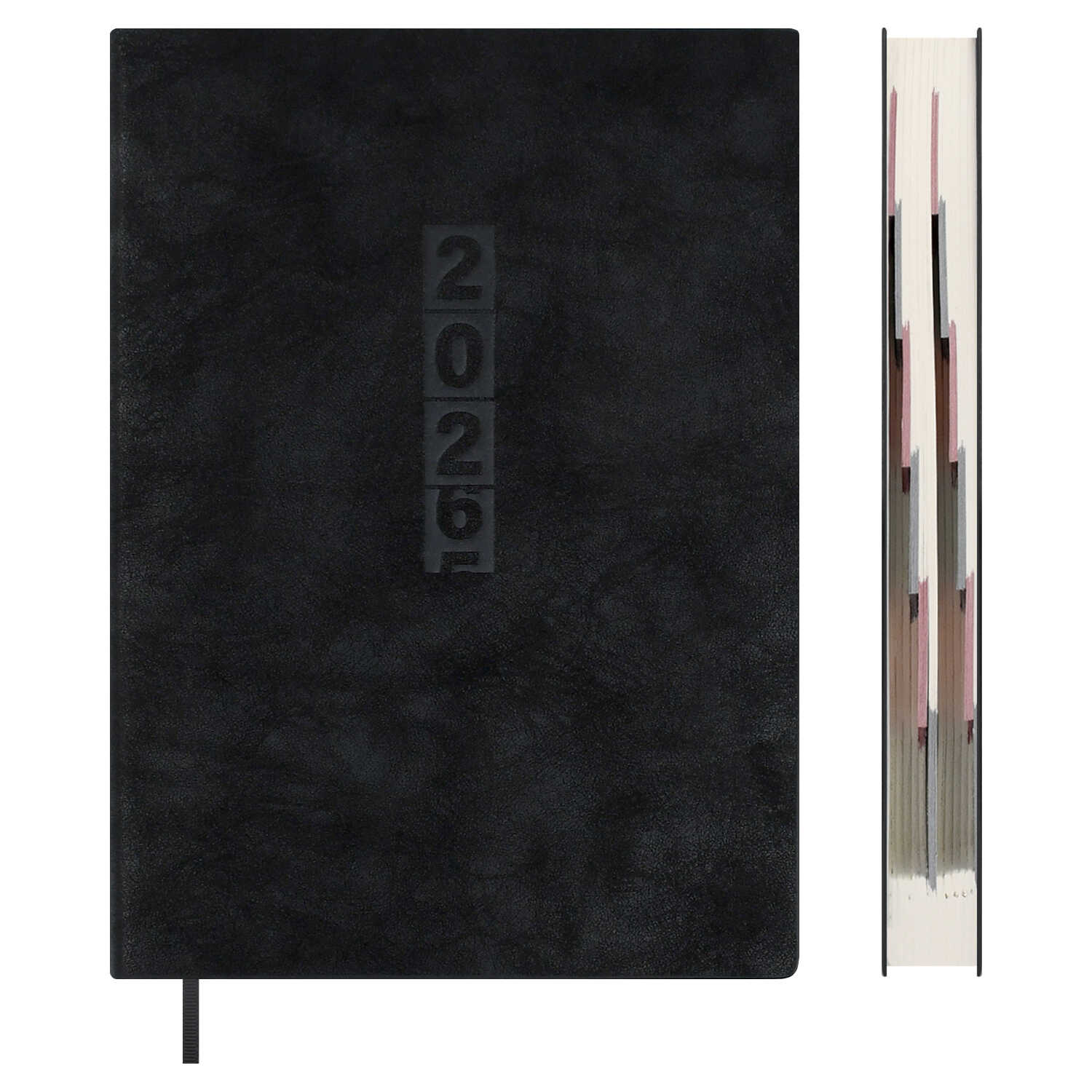 Ежедневник датированный 2026 ESCALADA, #ДУМАЙ КАК МИЛЛИАРДЕР, А6+, 176 л., арт. 70297/ 20 ТИВОЛИ ГЛОСС ЧЁРНЫЙ (кожзам: 126х174 мм, мягкий переплёт, запаянный край, материал обложки: искусственная кожа "Тиволи глосс"; декор: блинтовое тиснение; способ крепления блока: ниткошвейный; вн. блок: 176 л., кремовый офсет 70 г/м², печать в две краски (линия), справочный материал: есть; перфорация углов блока: есть; закладка/-и: одно ляссе; каптал: есть; форзац: печать пантоном; особенности: в блоке использованы мотивирующие высказывания из книги "Думай как миллиардер", помогающие сформировать правильное отношение к финансам, профессиональной деятельности, своим способностям и к жизни в целом)