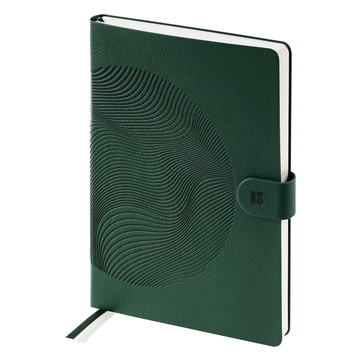 Классический недатированный ежедневник Berlingo "Symbol" формата А5 с интегральной обложкой из фактурной экокожи зелёного цвета с элегантным глубоким тиснением. Магнитная застёжка надёжно фиксирует ежедневник в закрытом состоянии, а также может быть использована для крепления ручки. Внутренний блок состоит из 136 листов высококачественной кремовой бумаги повышенной плотности 80 г/м² с пантонной печатью в 2 краски. Размер ежедневника – 155 на 213 мм.