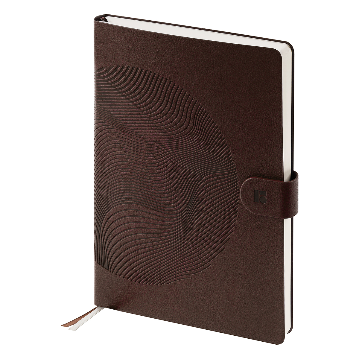 Классический недатированный ежедневник Berlingo "Symbol" формата А5 с интегральной обложкой из фактурной экокожи коричневого цвета с элегантным глубоким тиснением. Магнитная застёжка надёжно фиксирует ежедневник в закрытом состоянии, а также может быть использована для крепления ручки. Внутренний блок состоит из 136 листов высококачественной кремовой бумаги повышенной плотности 80 г/м² с пантонной печатью в 2 краски. Размер ежедневника – 155 на 213 мм.