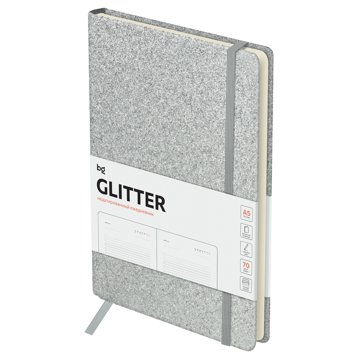 Ежедневник недатированный BG серии Glitter – идеальный компаньон для стильной и организованной жизни. Формат – А5 (145*205 мм). Изделие состоит из 136 листов тонированной бумаги плотностью 70 г/м2, которая подходит для любых типов ручек и не будет просвечиваться. В линованный блок с полем для даты и почасовым планингом удобно записывать встречи, идеи и задачи. Уголки листов с перфорацией.