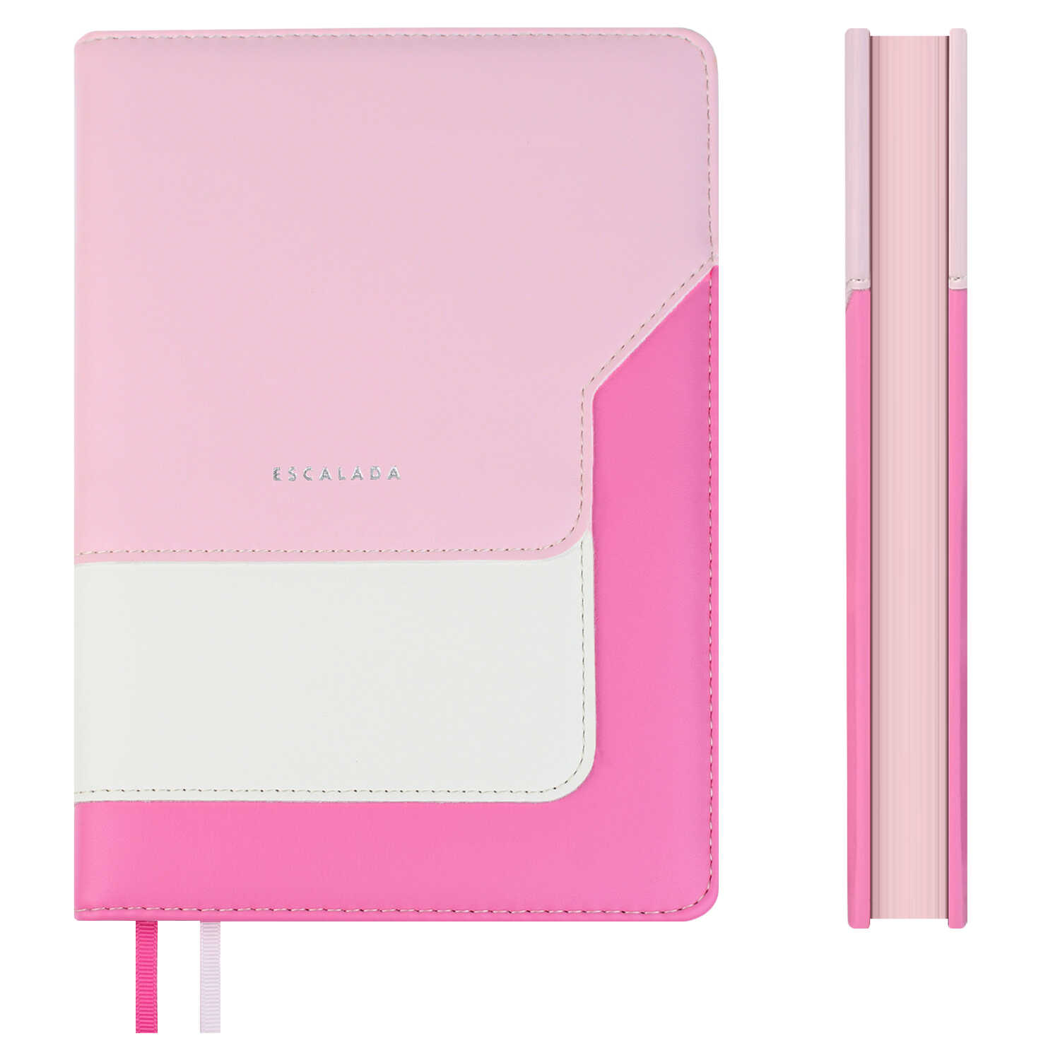 Ежедневник недатированный ESCALADA, А5, 160 л., арт. 70596/ 15 ЛАЙКА РОЗОВЫЙ (кожзам: 146х211 мм, твёрдый переплёт с поролоном, материал обложки: искусственная кожа "Лайка"; способ крепления блока: ниткошвейный; декор: отделочная строчка, тиснение фольгой; вн. блок: 160 л., кремовый офсет 70 г/м², печать в одну краску (линия), справочный материал: есть; перфорация углов блока: нет; отделка среза: окрашивание пантоном; закладка/-и: два ляссе)