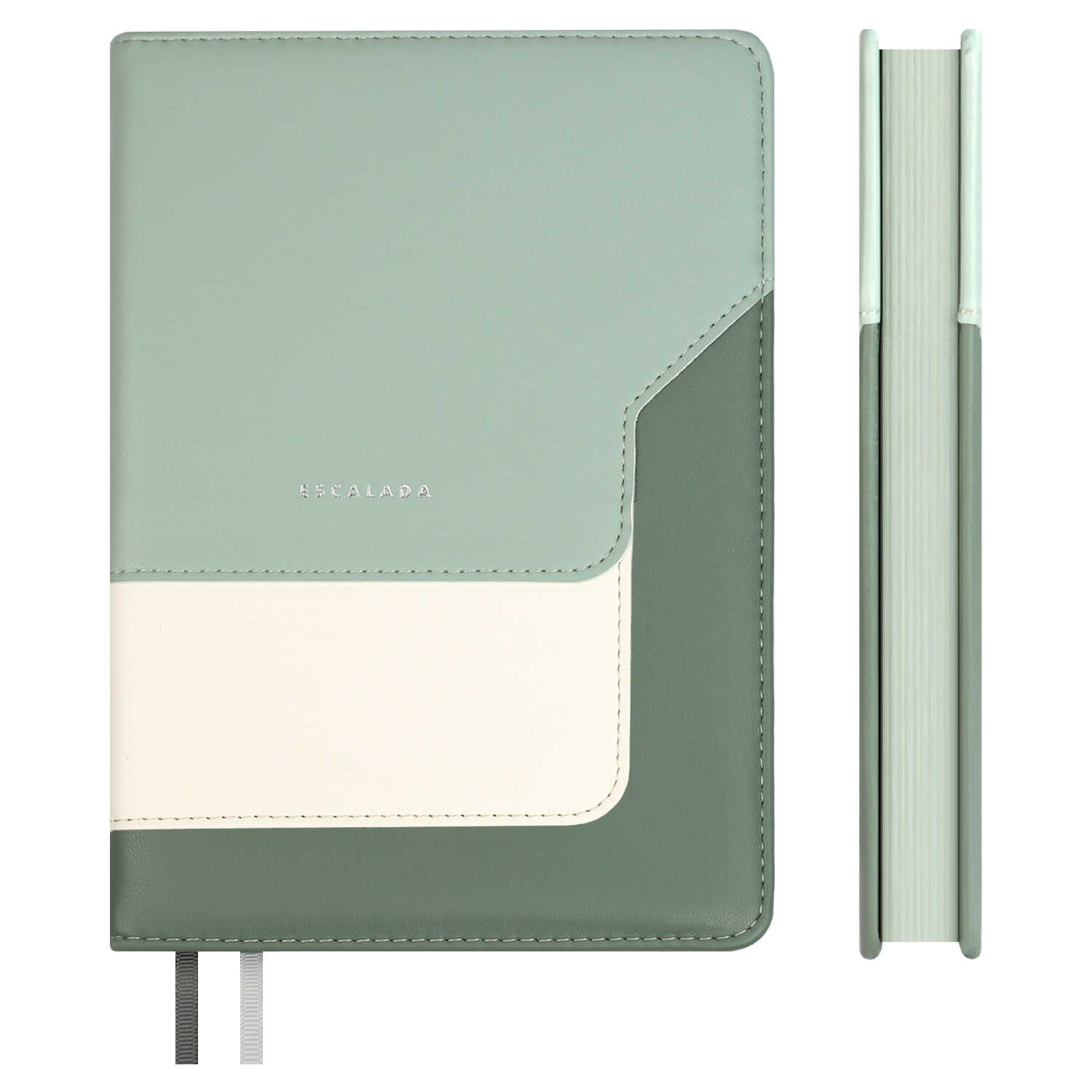 Ежедневник недатированный ESCALADA, А5, 160 л., арт. 70597/ 15 ЛАЙКА СВЕТЛО-ЗЕЛЁНЫЙ (кожзам: 146х211 мм, твёрдый переплёт с поролоном, материал обложки: искусственная кожа "Лайка"; способ крепления блока: ниткошвейный; декор: отделочная строчка, тиснение фольгой; вн. блок: 160 л., кремовый офсет 70 г/м², печать в одну краску (линия), справочный материал: есть; перфорация углов блока: нет; отделка среза: окрашивание пантоном; закладка/-и: два ляссе)