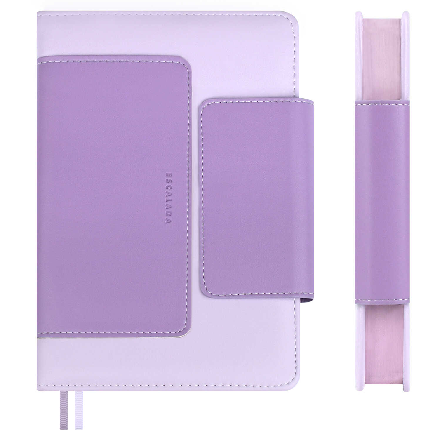 Ежедневник недатированный ESCALADA, А5, 160 л., арт. 70615/ 15 ЛАЙКА СИРЕНЕВЫЙ (кожзам: 150/146х211 мм, твёрдый переплёт с поролоном, материал обложки: искусственная кожа "Лайка"; способ крепления блока: ниткошвейный; декор: аппликация из искусственной кожи, блинтовое тиснение; вн. блок: 160 л., кремовый офсет 70 г/м², печать в одну краску (линия), справочный материал: есть; перфорация углов блока: нет; отделка среза: окрашивание пантоном; закладка/-и: два ляссе, каптал: есть; форзац: печать пантоном, особенности: магнитный клапан фигурный)