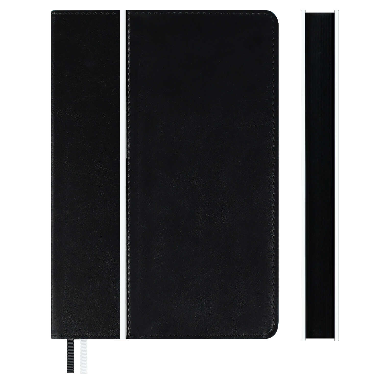 Ежедневник недатированный ESCALADA, А5, 160 л., арт. 70622/ 15 САРИФ ЧЁРНЫЙ/БЕЛЫЙ (кожзам: 146x211 мм, твёрдый переплёт, запаянный край, материал обложки: искусственная кожа "Сариф"; способ крепления блока: ниткошвейный; вн. блок: 160 л., кремовый офсет 70 г/м², печать в одну краску (линия), справочный материал: есть; перфорация углов блока: нет; отделка среза: окрашивание пантоном; закладка/-и: два ляссе, каптал: есть; форзац: печать пантоном, особенности: комбинированные материалы, рант контрастный, карман для мобильного телефона на лицевой части обложки)