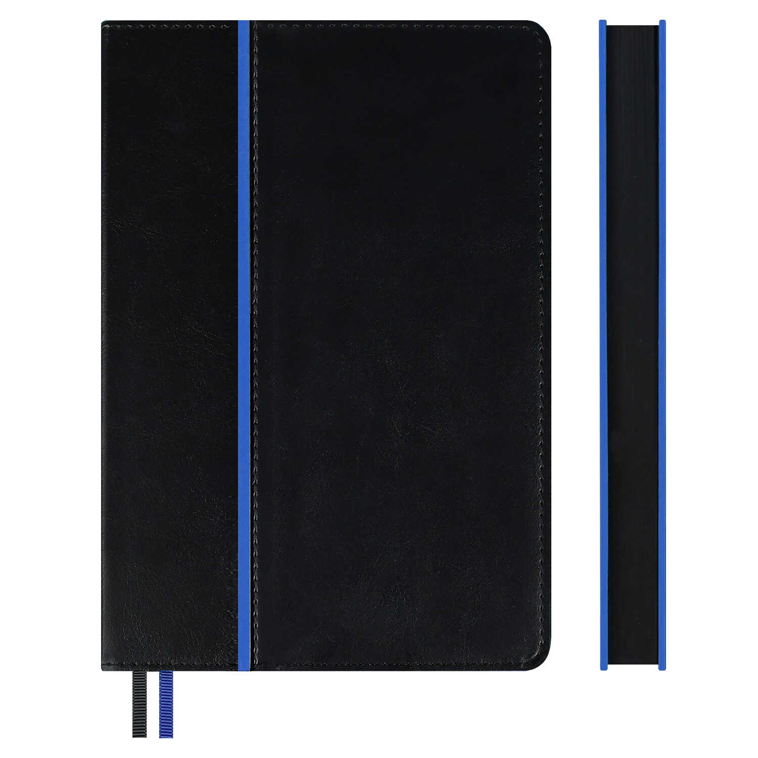 Ежедневник недатированный ESCALADA, А5, 160 л., арт. 70623/ 15 САРИФ ЧЁРНЫЙ/СИНИЙ (кожзам: 146x211 мм, твёрдый переплёт, запаянный край, материал обложки: искусственная кожа "Сариф"; способ крепления блока: ниткошвейный; вн. блок: 160 л., кремовый офсет 70 г/м², печать в одну краску (линия), справочный материал: есть; перфорация углов блока: нет; отделка среза: окрашивание пантоном; закладка/-и: два ляссе, каптал: есть; форзац: печать пантоном, особенности: комбинированные материалы, рант контрастный, карман для мобильного телефона на лицевой части обложки)