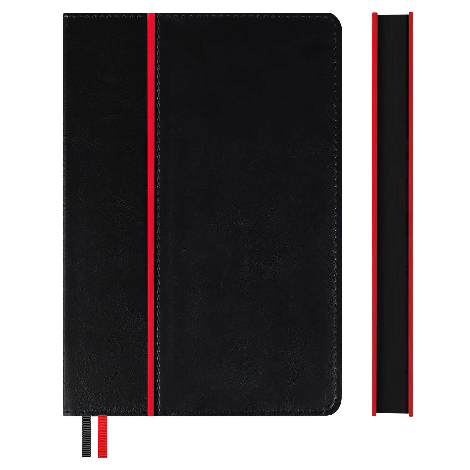 Ежедневник недатированный ESCALADA, А5, 160 л., арт. 70624/ 15 САРИФ ЧЁРНЫЙ/КРАСНЫЙ (кожзам: 146x211 мм, твёрдый переплёт, запаянный край, материал обложки: искусственная кожа "Сариф"; способ крепления блока: ниткошвейный; вн. блок: 160 л., кремовый офсет 70 г/м², печать в одну краску (линия), справочный материал: есть; перфорация углов блока: нет; отделка среза: окрашивание пантоном; закладка/-и: два ляссе, каптал: есть; форзац: печать пантоном, особенности: комбинированные материалы, рант контрастный, карман для мобильного телефона на лицевой части обложки)